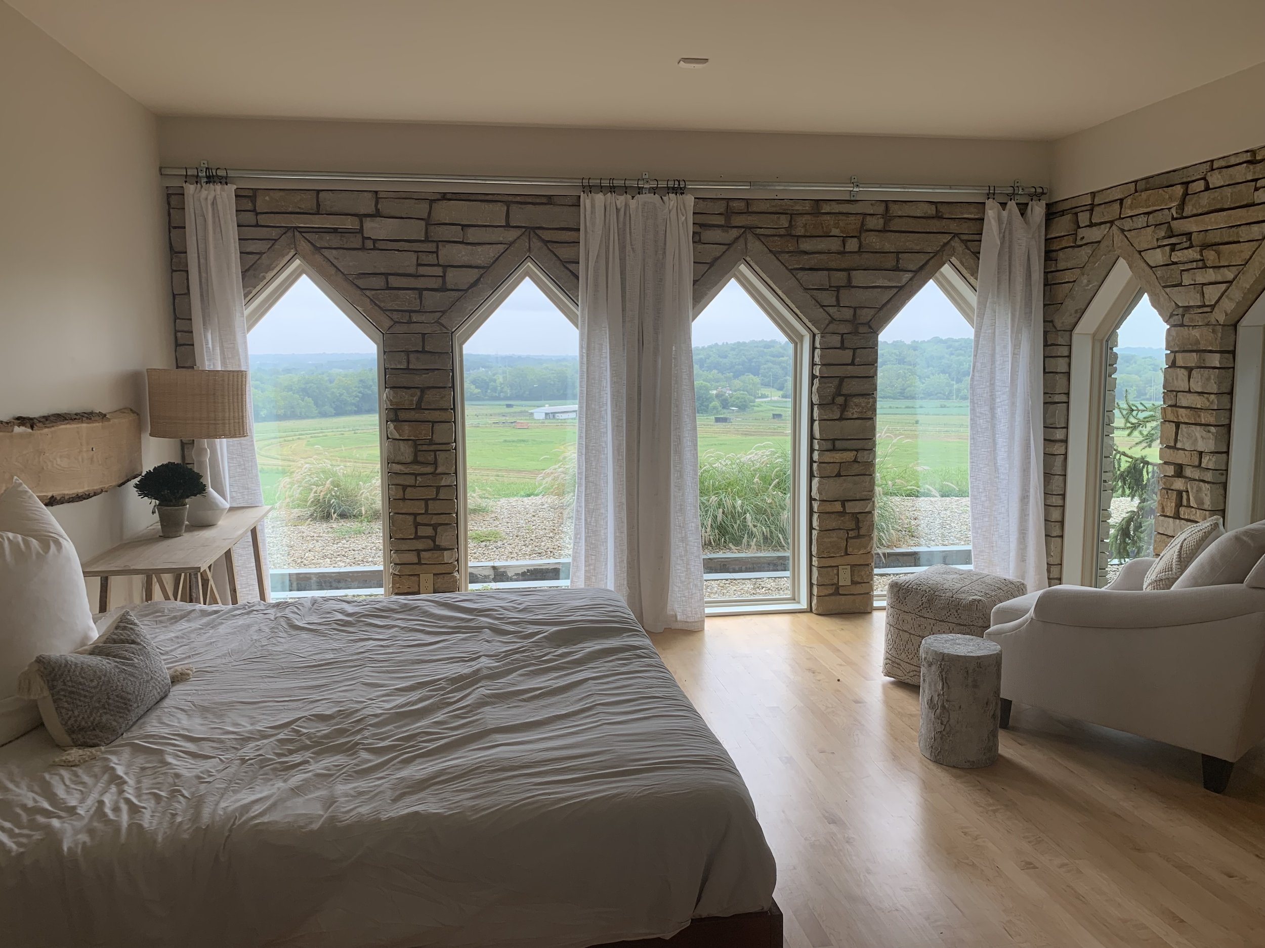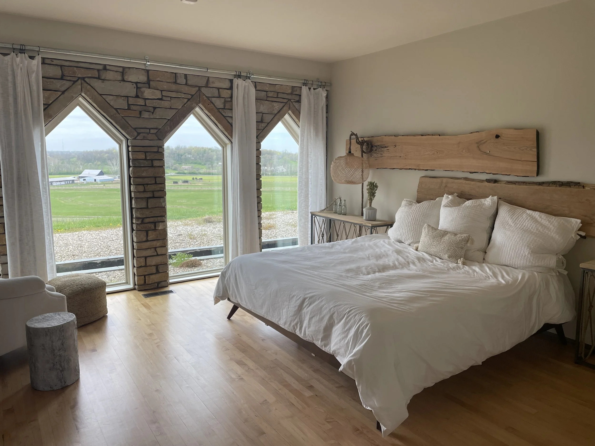 A spacious King Bed Suite with large windows overlooking the beautiful property.